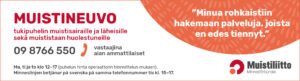 - alla kuvassa tukipuhelimen numero muistisairaille ja läheisille sekä muististaan huolestuneille