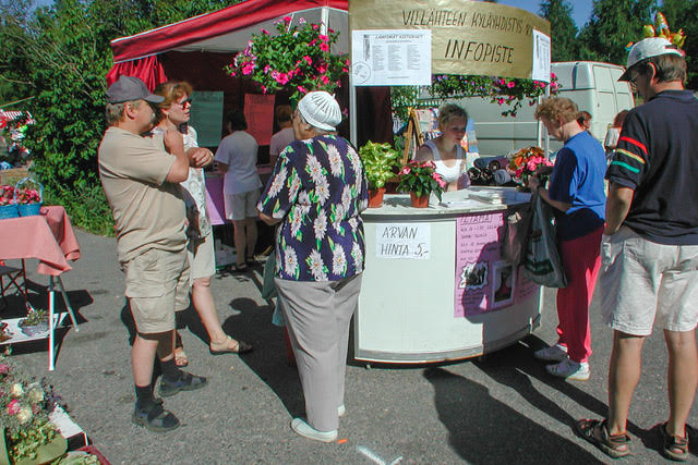 Kyläyhdistyksen organisoimia Villähteen kylämarkkinoita järjestettiin alkuaan nykyisen Salen ja Lähde Grillin välisellä alueella. Kuva vuodelta 2001 |